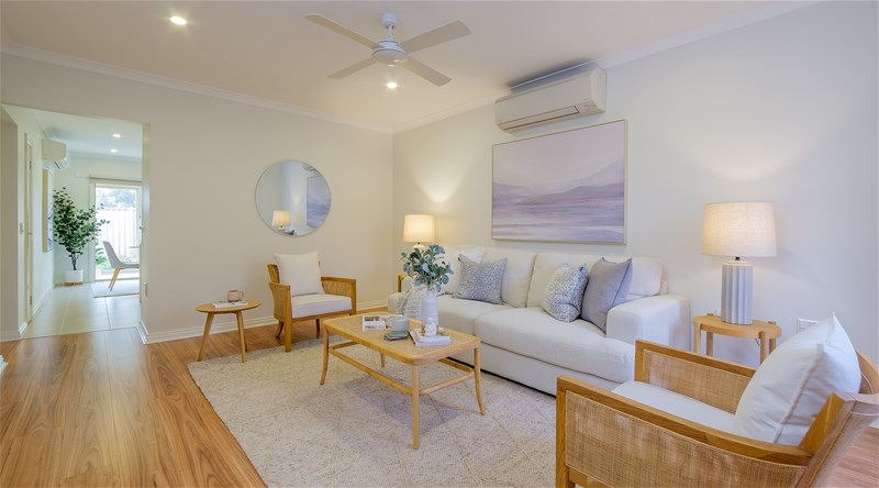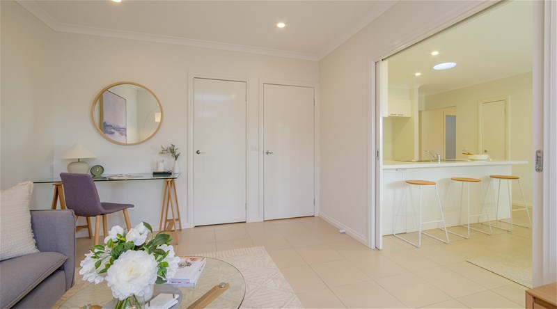 Two Bedrooms, Two bathrooms, Study or Second Living, Spacious Lounge, Kitchen / Meals, Outdoor Entertaining, Private Courtyard and Single Garage. This stylish Villa is in an ideal location alongside the beautiful village community garden. Offering ensuite to main bedroom, a second bathroom, built in robes to bedrooms, spacious living zones, including a well-appointed kitchen with quality appliances and stone bench tops, separate lounge and a second living room / hobby room / study or third bedroom. There is alfresco dining with an attractive, enclosed entertaining area and single garage offering direct access to villa. Many of the additional features include ducted vacuuming, gas central heating and split system air conditioning, remote control to garage, low maintenance rear garden and situated all within a very short stroll to the Community facilities, lake and all that Bellbrook Gardens Country Club has to offer. Register your interest today!